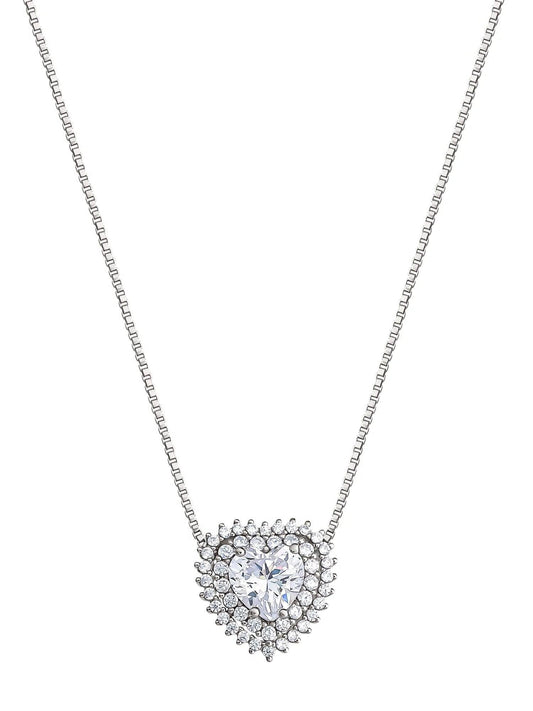 Fine Silver Plated Cubic Zirconia Heart Necklace