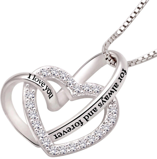 Jewelry Sterling Silver "I Love You for Always and Forever" Love Heart Cubic Zirconia Necklace