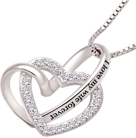 Jewelry Sterling Silver "I Love My Wife Forever" Love Heart Cubic Zirconia Necklace