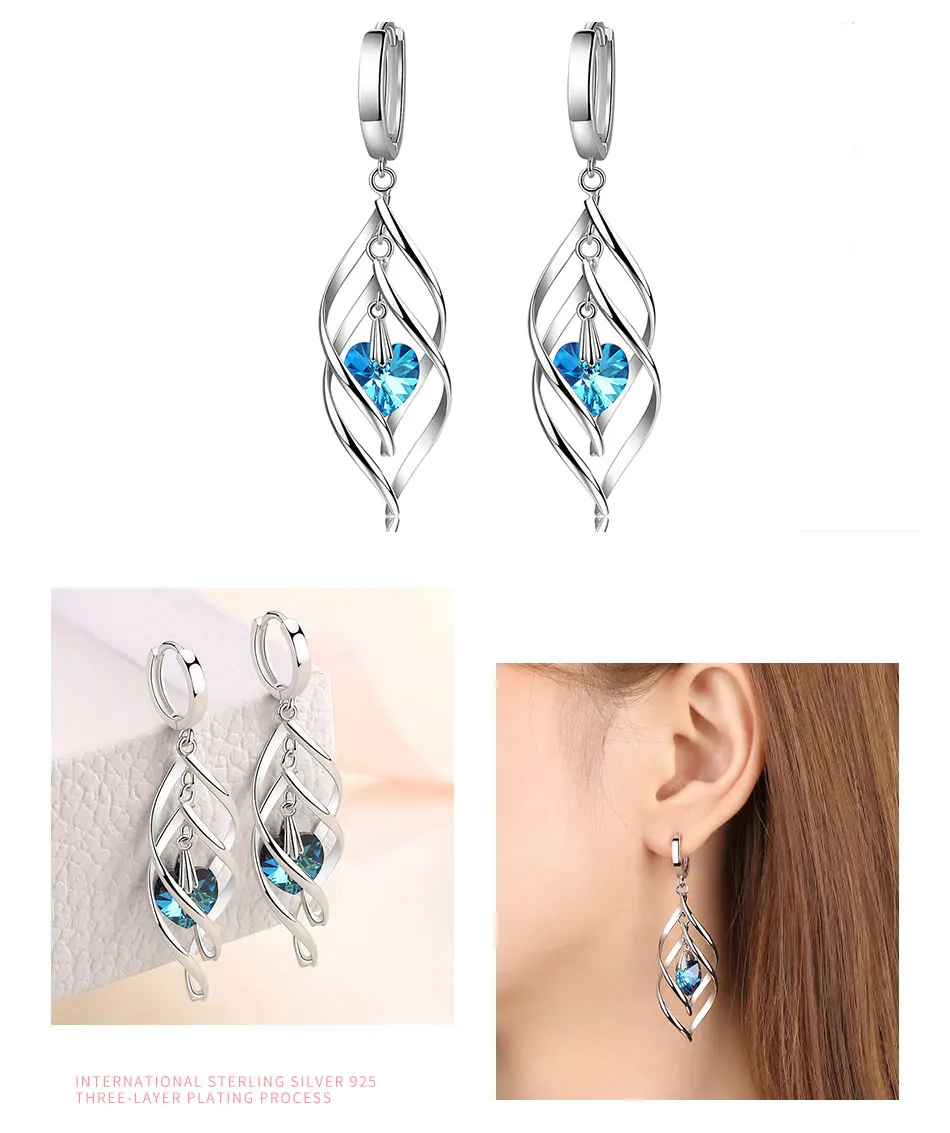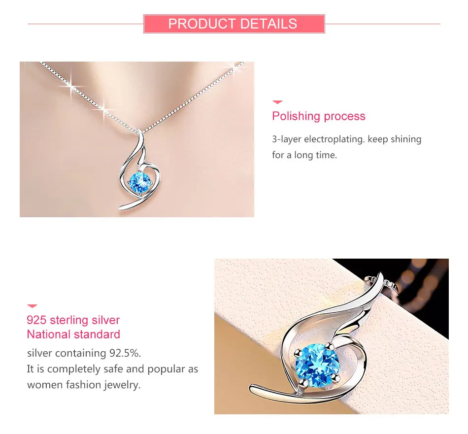925 Sterling Silver Blue Crystal Necklace Earring Set for Women Fashion Wedding Jewelry Party Gift